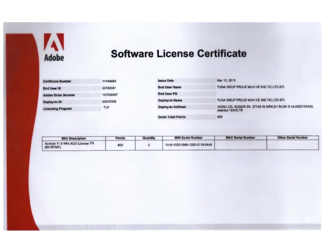 Adobe Software Licence